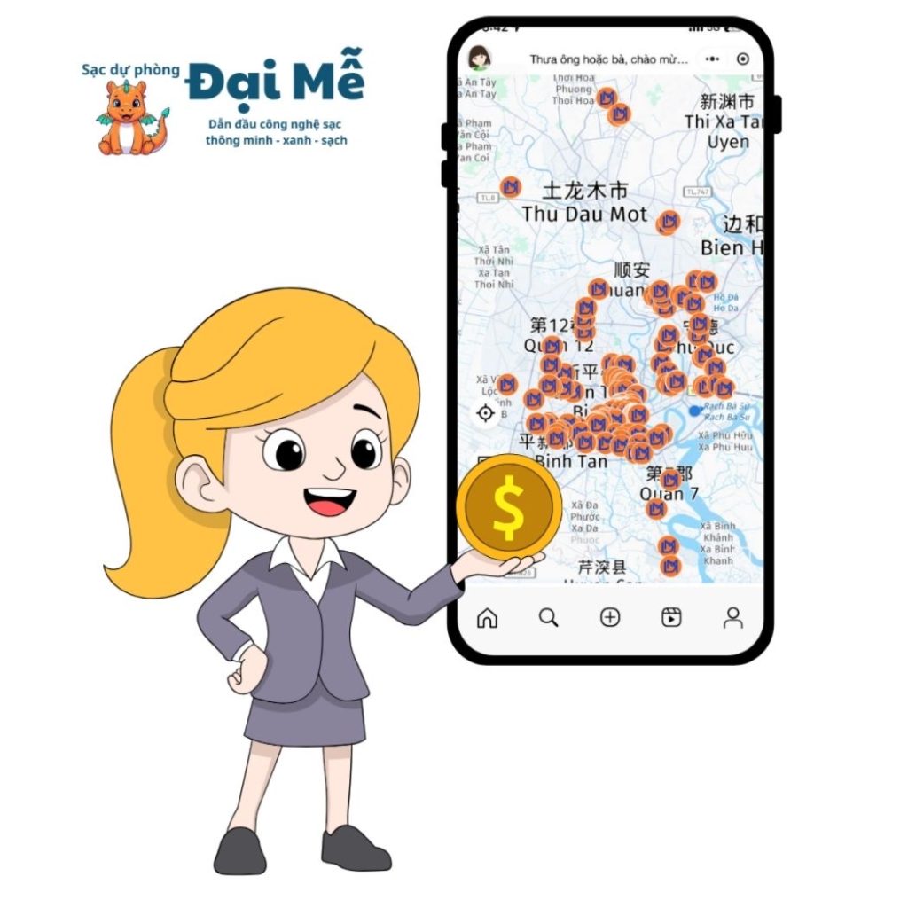 Quảng bá thương hiệu qua ứng dụng DAIME và màn hình trên thiết bị sạc.
